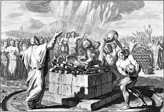 Image: Contest at Mount Carmel, engraving by Otto Elliger, public domain, via Pitts Theology Library, Emory University.