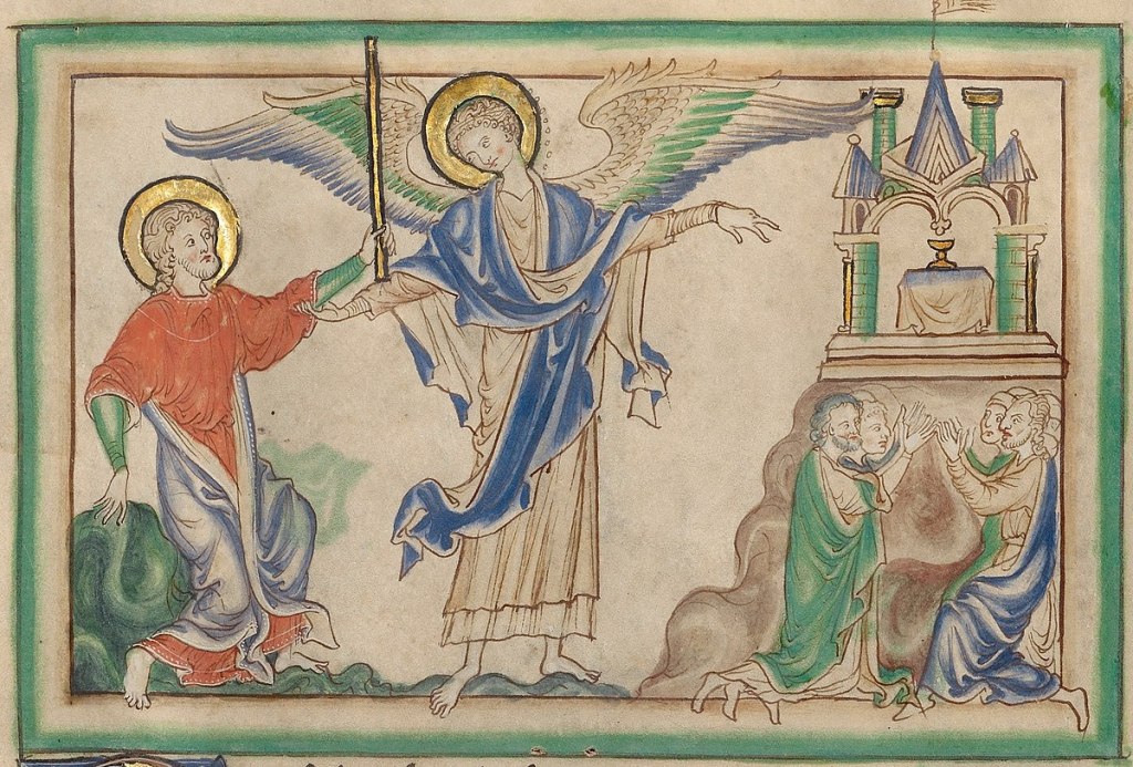 Image: Saint John Takes the Rod to Measure the Temple, unknown artist. Getty Center, Public domain, via Wikimedia Commons.