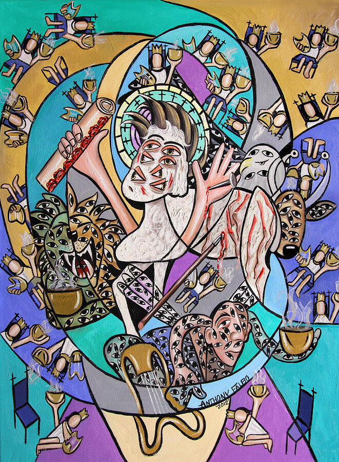 장로 중 한 명이 요한을 위로하며 유다 지파의 사자(lion, 힘과 왕권을 상징), 다윗의 뿌리가 승리하여 두루마리를 펼칠 자격이 있음을 알려줍니다. 그런데 요한은 사자 대신, “죽임을 당한 것 같은 어린양“을 봅니다. – 들은 것(승리한 사자)과 본 것(죽임당했던 어린양) 사이의 간극은 환상 속에서도 실제 속에서도 우리의 믿음을 촉구합니다 – 어린 양에게는 일곱 뿔과 일곱 눈이 있으며, 이는 온 땅에 보내심을 받은 하나님의 일곱 영을 의미합니다.