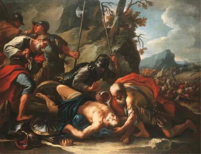 므깃도 전쟁에서 요시아 왕의 죽음 (왕하23, 대하35) Death of King Josiah.Francesco Conti, public domain, via Wikimedia Commons